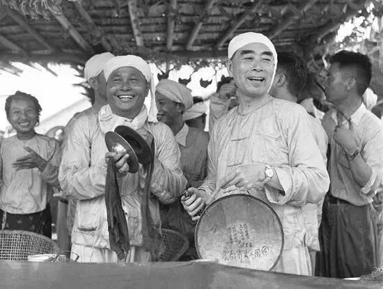 ▲1961年4月15日,缅甸总理吴努和周恩来总理在西双版纳傣族自治州和傣族人民一起欢度泼水节。王纯德摄。(图片来源:西双版纳发布)